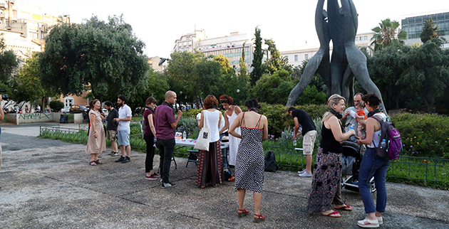 Απόγευμα Πέμπτης στην πλατεία Κλαυθμώνος. Ζέστη, κορναρίσματα, άνθρωποι με κούφια μάτια στις γωνιές των δρόμων. Ο σκηνοθέτης Πρόδρομος Τσινικόρης ανεβάζει την τελευταία του παράσταση, «Στη μέση του δρόμου».