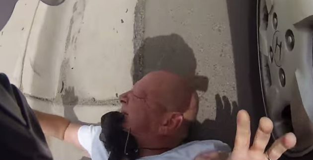 Ο μοτοσικλετιστής στη συνέχεια θα τον ρίξει στο έδαφος με σκοπό να τον ηρεμήσει. Ο νεαρός άνδρας φορούσε μια κάμερα GoPro στο κράνος του, και ήταν σε θέση να κινηματογραφήσει όλο το σκηνικό. Ο οδηγός ήταν υπό την επήρεια αλκοόλ και κατηγορήθηκε για επικίνδυνη οδήγηση, απειλή και επίθεση.