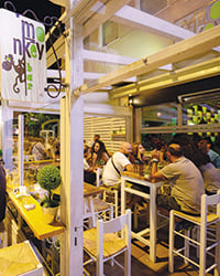 Πλήρως ανακαινισμένο, σε ένα εκπληκτικό περιβάλλον, ο επισκέπτης θα βρει χωρίς υπερβολή τα πάντα όλα. Από πρωινό, χυμούς και καφέ τις πρωινές ώρες έως κοκτέιλ και -φυσικά- φαγητό. Ο κατάλογός του είναι υπερπλήρης και περιλαμβάνει σαλάτες, ζυμαρικά, μεγάλη ποικιλία από μπέργκερ (μέτρησα 14 διαφορετικά), ψαρικά όπως σολομό στη σχάρα και κρεατικά (μπιφτέκι, κοτόπουλο και ποικιλία, μεταξύ άλλων).