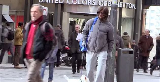 Στο σχετικό βίντεο παρακολουθούμε τον πάμπλουτο ποδοσφαιριστή να μεταμορφώνεται με περούκα, εσωτερική παραμορφωτική στολή και ψεύτικο μούσι και να περιδιαβαίνει την Μαδρίτη με μία μπάλα και ένα σκυλί. Στην πολυσύχναστη πλατεία του Callao, o Πορτογάλος διεθνής δένει τον σκύλο του και αρχίζει το ζέσταμα με την μπάλα, χωρίς κανείς να του δίνει σημασία.