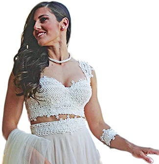 Το νυφικό της pole dancer (παράλληλα με τον χορό στον στύλο, σπουδάζει στο τμήμα Επιστήμης Διαιτολογίας – Διατροφής στο Χαροκόπειο Πανεπιστήμιο της Αθήνας) ήταν του οίκου Konstantinos Melis by Laskos, το μακιγιάζ επιμελήθηκε η μητέρα της Εύη Μακρή και το χτένισμα η hair stylist της Χρύσα Μπονατάκη.
