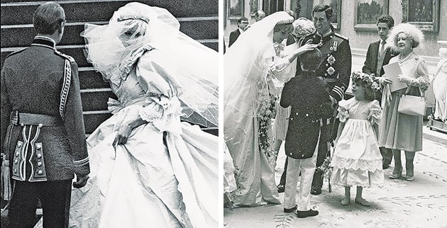 Ψιθυρίζοντας ενθαρρυντικά λόγια στο αυτί της πεντάχρονης παρανύμφου της την οποία κρατάει αγκαλιά, η Νταϊάνα, η πριγκίπισσα της Ουαλίας, δείχνει -αν και νύφη- να νοιάζεται περισσότερο για τη διάθεση της μικρής παρά για το τσαλάκωμα του νυφικού της, την ώρα που περπατάει μέσα σε μία από τις μεγαλειώδεις αίθουσες του παλατιού του Μπάκιγχαμ.
