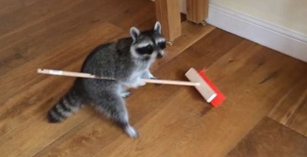 Είναι ασυνήθιστο να τα βλέπουμε ως κατοικίδια, ωστόσο όταν τα ρακούν εξημερωθούν, μπορούν να κάνουν πολλά πράγματα. Ο ιδιοκτήτης αυτού του ρακούν, του έμαθε να χρησιμοποιεί τη σκούπα στο σπίτι.