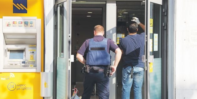 Οι δύο ληστές που έμειναν πίσω άρχισαν να ανοίγουν τις θυρίδες χρησιμοποιώντας για αρκετή ώρα ένα τρυπάνι και μια μικρή συσκευή οξυγόνου, όπως ανέφεραν στις πρώτες καταθέσεις που έδωσαν στους αστυνομικούς της Ασφάλειας οι υπάλληλοι και οι πελάτες που άκουγαν τον χαρακτηριστικό θόρυβο!