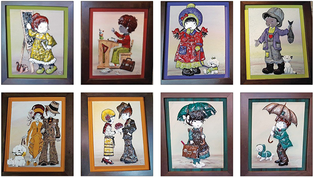 Ξύλο, άμμος, μέταλλο και χρώματα ειδικά για γυαλί συνδυάστηκαν σε πολύχρωμες, χειροποίητες συνθέσεις που παραπέμπουν νοερά στην ανεμελιά των παιδικών μας χρόνων. Οι πίνακες-στολίδια που απεικονίζουν τις αθώες παιδικές μορφές της μεγάλης εικονογράφου Sarah Kay και φιλοτέχνησε με πολύ μεράκι τα τελευταία τρία χρόνια η εκπαιδευτικός Κάτια Γεωργίου από τα Ιωάννινα μας στέλνουν σε ένα ταξίδι που ζωντανεύει τις αναμνήσεις!