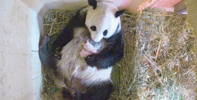 Με απεριόριστη μητρική στοργή το θηλυκό πάντα Γιανγκ Γιανγκ κρατά στην αγκαλιά του τα δίδυμα μωρά που μόλις γέννησε στον ζωολογικό κήπο Σένμπρουν της Αυστρίας.