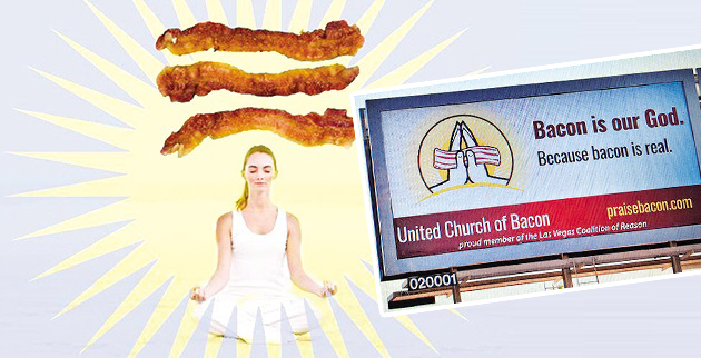 Σε σάντουιτς, τοστ, με αβγά, «ξαπλωμένο» πάνω σε πατάτες, μαζί με λιωμένο τυρί, ακόμα και ως γεύση σε παγωτό. Αυτές και πολλές άλλες είναι οι χρήσεις του μπέικον σε όλο τον δυτικό κόσμο. Στις ΗΠΑ όμως εδώ και λίγα χρόνια έχουν «κάνει θεό» το αγαπημένο αλλαντικό, ιδρύοντας την ενωμένη εκκλησία του μπέικον. H United Church of Bacon ιδρύθηκε το 2010 από τον Τζον Γουάιτσαϊντ, έχει έδρα το «αμαρτωλό» Λας Βέγκας και στόχο τη διαμαρτυρία για τις διακρίσεις, όπως λένε οι πιστοί, εις βάρος των άθεων.