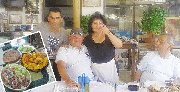 Η παρέα παρήγγειλε παραδοσιακούς θαλασσινούς μεζέδες και κοκκινιστό κατσικάκι Ψερίμου, όλα μαγειρεμένα από τα χέρια της κυρα-Φωτεινής. Σύμφωνα με το kalymnos-news.gr, το γεύμα συνοδεύτηκε από σταφύλια, σύκα και φραγκόσυκα, αλλά και από φανουρόπιτα, λόγω της γιορτής του αγίου Φανουρίου.