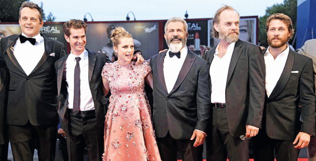Η επιστροφή του Μελ Γκίμπσον πίσω από τις κάμερες έγινε με μια κλασική εμφάνιση, μπροστά από αυτές, στο πιο διάσημο κόκκινο χαλί της Ιταλίας. Ο παλιάς κοπής σταρ παρουσίασε στο Φεστιβάλ Βενετίας τη νέα ταινία του, 10 χρόνια μετά την προηγούμενη σκηνοθετική δουλειά του. Πρόκειται για το «Hacksaw Ridge», μια αντιπολεμική ταινία με την οποία φιλοδοξεί να γυρίσει σελίδα στη ζωή του, αφήνοντας πίσω του τα σκάνδαλα που έπληξαν τη δημόσια εικόνα του.