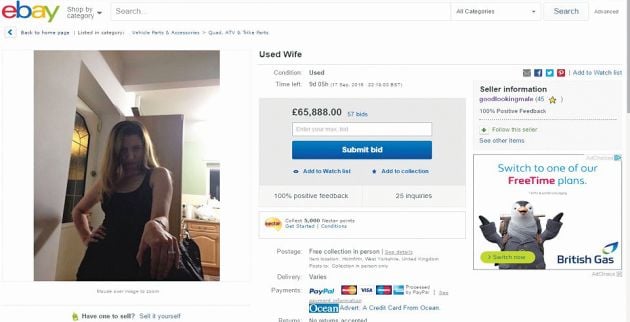 Μπορεί να είναι «μεταχειρισμένη», έχει όμως ακόμα «χιλιόμετρα» να κάνει χωρίς προβλήματα. Μοιάζει με αγγελία πώλησης αυτοκινήτου, την οποία έβαλε Βρετανός στο eBay. Η τιμή που έπιασε πλησιάζει αυτήν μιας Jaguar. Μόνο που δεν πρόκειται για αυτοκίνητο, αλλά για τη σύζυγό του.