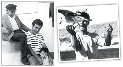 Οι κράχτες μου ήταν ένα ορφανό γλαράκι, που το μεγάλωσα και το φώναζα «Ελα», αλλά και ένα χελωνάκι, το οποίο είχα βρει στη θάλασσα και το κρατούσα σε μια λιμνούλα έξω από το σπίτι μου. Είμαι πολύ καλός δέκτης με τα ζώα. Μετά πήρα και τον γνωστό πελεκάνο, τον Πέτρο, ο οποίος εμφανίστηκε το 1959-1960 στο νησί και τον αγαπούσαμε όλοι.