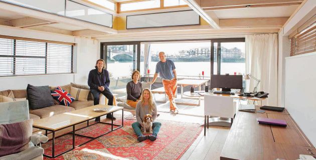 Πατέρας και κόρη είναι γείτονες στο Τσέλσι, όχι όμως σε κάποιον δρόμο της πολυτελούς συνοικίας, αλλά πάνω στον ποταμό Τάμεση. Δύο γενιές που έκαναν την ίδια επιλογή, να φύγουν από τα διαμερίσματά τους, για να ζήσουν σε ποταμόπλοιο, διαλέγοντας όμως πλωτά σπίτια που είναι αγκυροβολημένα δίπλα δίπλα. «Η κοπέλα μου και εγώ μένουμε εδώ όταν δεν ταξιδεύουμε» εξηγεί ο Σάιμον Γούντροφ, προσθέτοντας ότι η κόρη του με τον σύζυγό της ζουν στο δικό τους πλοιάριο. Λατρεύει να γευματίζει στα εστιατόρια της Γέφυρας του Λονδίνου, ενώ όταν μένει στο πλωτό σπίτι τον χαλαρώνει η θέα με τους κύκνους και τις πάπιες του ποταμού.