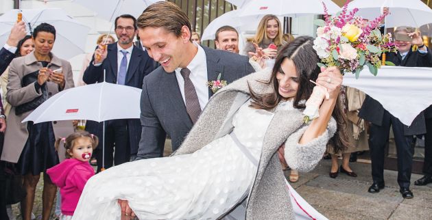 Η τελετή του πολιτικού γάμου του με την ηθοποιό Λίλι Χολούντερ μόλις έχει ολοκληρωθεί και οι νεόνυμφοι περνούν περιχαρείς ανάμεσα από τους καλεσμένους τους. Ο βροχερός καιρός δεν στάθηκε ικανός να χαλάσει την ωραιότερη ημέρα του ζευγαριού, ενώ στους καλεσμένους δόθηκαν ομπρέλες, που ήταν μάλιστα λευκού χρώματος για να ταιριάζουν με την περίσταση.