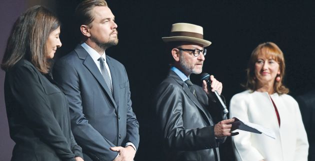 Δίπλα του στη σκηνή του θεάτρου Σατελέ βρέθηκαν η Γαλλίδα υπουργός Περιβάλλοντος Σεγκολέν Ρουαγιάλ και η δήμαρχος του Παρισιού Αν Ινταλγκό, ενώ το «παρών» έδωσαν οι ηθοποιοί Μαριόν Κοτιγιάρ και Γκιγιόμ Κανέ, καθώς και ο σκηνοθέτης Γουές Αντερσον.