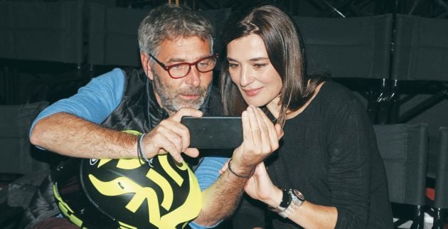 Κάρφωσε στραβά στο ένα αυτί τα μπορντό γυαλιά πρεσβυωπίας δεμένα με κορδόνι για να τα βρίσκει αμέσως, πήρε το πράσινο φωσφοριζέ κράνος του αγκαλιά, έκατσε σταυροπόδι, στρίμωξε την καρέκλα του δίπλα στης ηθοποιού και ξεκίνησε την προβολή!