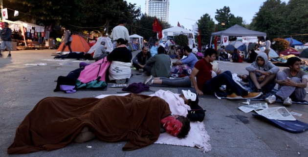 Σε δίνη του κυκλώνα του ξεσηκωμού έχουν μετατραπεί το πάρκο Γκεζί και η πλατεία Ταξίμ μετά την αποχώρηση της αστυνομίας και τη μετατροπή σε κατασκήνωση του κινήματος Occupy Gezi. Η περιοχή όπου σημειώθηκαν τα πρώτα επεισόδια αστυνομικής βίας είναι πια ένα υπαίθριο κοινόβιο επαναστατημένων Τούρκων όλων των ηλικιών, που θυμίζει λίγο κατασκήνωση και λίγο στρατόπεδο προσφύγων. Το επαναστατικό «κάμπινγκ» περιλαμβάνει, εκτός από σκηνές, εργαστήρια, κουζίνα, σημεία διδασκαλίας, δανειστικές βιβλιοθήκες, σημεία διανομής φαρμάκων μέχρι και κτηνιατρείο για τα σκυλάκια που πέφτουν θύματα των δακρυγόνων.