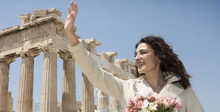 Φωτογραφίζεται με φόντο το Ερέχθειο, τις Καρυάτιδες και τον Παρθενώνα για το αφιέρωμα στη Μελίνα στα Πρέσπεια.