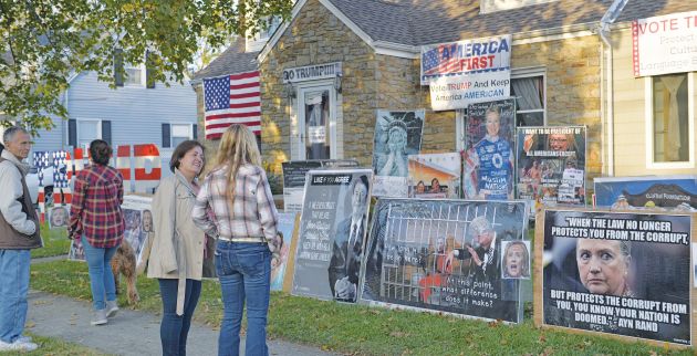 Με μεγάλα γράμματα έχει γράψει πάνω στην πρόσοψή του το όνομα του υποψηφίου των Ρεπουμπλικάνων, ενώ έχει βάλει παντού αφίσες με μηνύματα στήριξης του Τραμπ και καταγγελίες για τη Χίλαρι Κλίντον. Το σπίτι έγινε viral από βίντεο που τράβηξε ένας περαστικός ταχυδρόμος και έκτοτε πολλοί είναι αυτοί που έσπευσαν για να το δουν από κοντά.