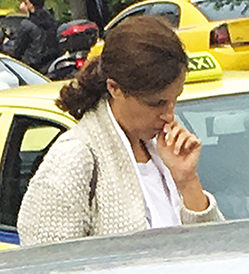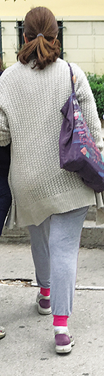 Σαν σκιά του εαυτού της, με τα μαλλιά πιασμένα σε χαλαρή κοτσίδα, χωρίς κοσμήματα, φορώντας φόρμα, αθλητικά παπούτσια και ζακέτα, η πρώην κυρία