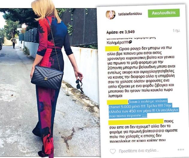 «Πολύ ιδανικό. Μόνο η τσάντα κοστίζει 5.000 ευρώ. Τρέλα! Στην Ελλάδα των 450 ευρώ τον μήνα! Οι υπάλληλοί σου πόσα παίρνουν;» αναρωτήθηκε μια άλλη, ξεσηκώνοντας διαδικτυακή θύελλα αντιδράσεων.