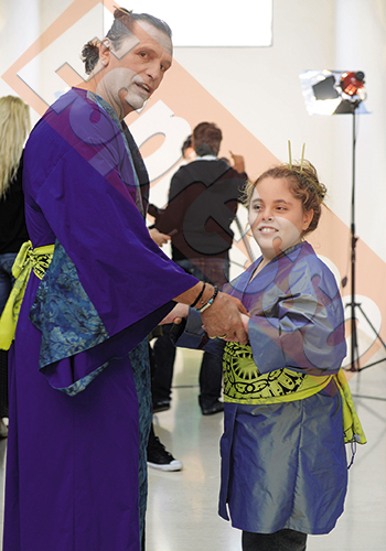 Η προετοιμασία της «μεταμόρφωσης» της οικογένειας σε αυτοκράτορες της Ιαπωνίας -καθώς το κόνσεπτ του ημερολογίου φέτος έχει θέμα τους γαλαζοαίματους- ξεκίνησε με τα «μαγικά» στα μαλλιά τους από τον κομμωτή, συνεχίστηκε με τις πινελιές της make up artist Ελένης Χριστοδούλου, ενώ κατόπιν οι