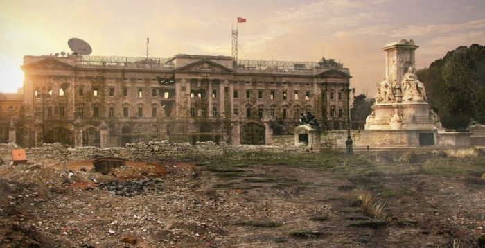 Σάκοι με άμμο, στοιβαγμένοι μπροστά από τα μισογκρεμισμένα τείχη του Μπάκιγχαμ, του οποίου στέκει όρθιο μόνο το ρημαγμένο κουφάρι. Την ίδια ώρα στο Albert Docks του Λίβερπουλ τα αναρριχητικά  φυτά έχουν κρύψει το κτίριο, που μοιάζει στοιχειωμένο. Αυτές οι φωτογραφίες αποτελούν μια ανατριχιαστική προσομοίωση του πώς θα ήταν ιδιαίτερα αναγνωρίσιμα κτίρια της Βρετανίας ύστερα από μια πανδημία.