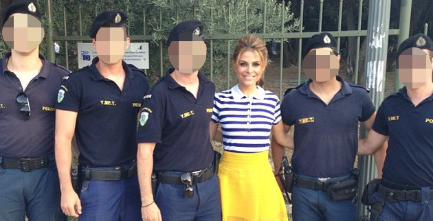 Εκανε τις… γκάφες της στο Τwitter η Μαρία Μενούνος, αντιλήφθηκε μόνο τη μία, τη διόρθωσε και άφησε την άλλη σε… κοινή θέα. Η Ελληνοαμερικανίδα παρουσιάστρια, που βρέθηκε στην Ελλάδα για να βαφτίσει την κόρη της Μαριέττας Χρουσαλά και του Λέοντα Πατίτσα, ανέβηκε την Κυριακή στον ιερό βράχο της Ακρόπολης. Εκεί, αφού ξεναγήθηκε στον αρχαιολογικό χώρο, αποφάσισε να φωτογραφηθεί με αστυνομικούς που περιπολούσαν στην περιοχή και… ανέβασε τη φωτογραφία στο Τwitter γράφοντας: «Οχι και η πιο όμορφη αστυνομία του κόσμου! Οπα!» Μόλις κατάλαβε ότι είχε κάνει… γκάφα έσπευσε να κατεβάσει τη φωτογραφία από το Διαδίκτυο, ωστόσο επανήλθε δριμύτερη ποστάροντας ξανά το ντοκουμέντο, με τα πρόσωπα των αστυνομικών πλήρως εκτεθειμένα, αλλά με διορθωμένο το… σχόλιο. «Η ορθογραφική διόρθωση έκανε χάλια το προηγούμενο ποστ. Η πιο ωραία αστυνομία του κόσμου. Ο λα λα!». Προφανώς η Μαρία δεν γνωρίζει ότι απαγορεύεται η δημοσίευση προσώπων των αστυνομικών, γι’ αυτό και ποζάρει όλο καμάρι δίπλα τους με ριγέ πόλο μπλουζάκι, κίτρινη φούστα και -απ’ ό,τι μαντεύουμε- σανδάλια της κουμπάρας της Μαριέττας. Η… απρόσεκτη Μαρία πάντως αυτές τις μέρες κάνει διακοπές στη Μύκονο και μάλιστα, όπως μας πληροφορεί, μένει σε πολυτελή βίλα στην περιοχή της Ελιάς.
