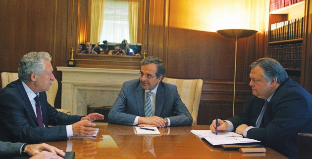Ο πρόεδρος του ΠΑΣΟΚ δήλωσε: «Η χθεσινοβραδινή συζήτηση ήταν πολύ δύσκολη. Πρέπει να υπάρξει αποκατάσταση της λειτουργίας της δημόσιας ραδιοτηλεόρασης το συντομότερο δυνατό» ήταν ακριβώς τα λόγια του. Σε κανένα σημείο των δηλώσεών του δεν χρησιμοποίησε τη λέξη «ΕΡΤ», σημάδι ότι έχει αποδεχθεί πως ο φορέας δεν πρόκειται να λειτουργήσει και πάλι όπως παλιά. Επανέλαβε, δε, ότι θα πρέπει να επαναθεμελιωθεί η ίδια η ύπαρξη της κυβέρνησης και δήλωσε ευθέως ότι η πλειοψηφία του ελληνικού λαού δεν θέλει εκλογές, αλλά σταθερότητα. Από την πλευρά του, ο Φώτης Κουβέλης, κινούμενος στο ίδιο μήκος κύματος, είπε πως καταβάλλει κάθε προσπάθεια προκειμένου να υπάρξει λύση, και ότι «η κυβέρνηση στηρίζεται από τρία κόμματα, και οι αποφάσεις θα πρέπει να λαμβάνονται σε κοινό τόπο. Διεκδικών την επικαιροποίηση της προγραμματικής συμφωνίας μας».