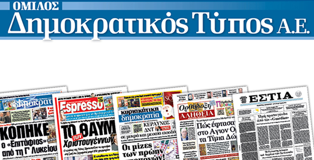 Η Α.Ε. ΔΗΜΟΚΡΑΤΙΚΟΣ ΤΥΠΟΣ, εκδότρια των ημερήσιων εφημερίδων «ΔΗΜΟΚΡΑΤΙΑ», «ΕΣΤΙΑ», «ESPRESSO» και των εβδομαδιαίων «ΚΥΡΙΑΚΑΤΙΚΗ ΔΗΜΟΚΡΑΤΙΑ» και «ΟΡΘΟΔΟΞΗ ΑΛΗΘΕΙΑ», ανακοινώνει τα εξής: