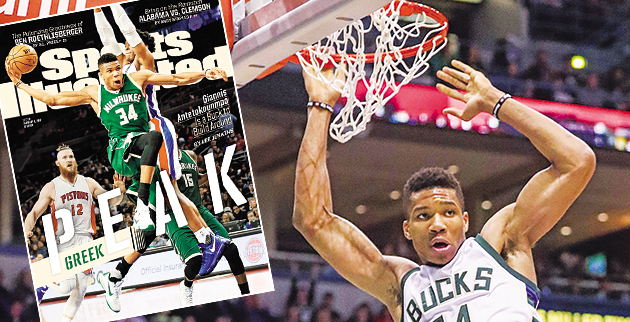 Το παρωνύμιο «The Greek Freak» (=σε ελεύθερη μετάφραση, «ελληνικό τέρας») υιοθετήθηκε από τον Τύπο της Αμερικής γιατί δυσκολευόταν το 2013 να προφέρει το επώνυμό του. Τρία χρόνια μετά την επιλογή του στο Νο15 του ντραφτ του ΝΒΑ από το Μιλγουόκι, όμως, το όνομά του είναι πλέον διάσημο και τα παρατσούκλια παραφράζονται. Κάτι τέτοιο επιχείρησε το νέο τεύχος του έγκυρου περιοδικού «Sports Illustrated», το εξώφυλλο του οποίου θα κοσμήσει στις 9 Ιανουαρίου ο Γιάννης Αντετοκούνμπο, με τίτλο «Greek Peak» (σ.σ.: κάτι σαν ελληνική κορυφή)! Το δημοσίευμα του δημοσιογράφου Λι Τζένκινς, το οποίο προδημοσιεύτηκε χθες στην ιστοσελίδα SI.com, αναφέρει ότι «οι Μπακς πρέπει να χτίσουν το μέλλον τους γύρω από τον Giannis», με τιμητικό υπότιτλο που επισημαίνει ότι «με ύψος 2,11 μ., ο Αντετοκούνμπο είναι ο πιο ενδιαφέρων πλέι μέικερ στην ιστορία του ΝΒΑ»! Ο Τζένκινς έγραψε επίσης ότι «ο Γιάννης, έπειτα από άσχημες βραδιές, δεν κάνει ντους. Φεύγει και οδηγεί ως το προπονητικό κέντρο, όπου αναπαριστά το παιχνίδι, διορθώνει τα λάθη και ιδρώνει μία άλλη φανέλα ως τη 1 τα ξημερώματα».