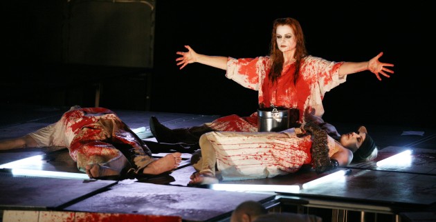 Την αιματοβαμμένη επιστροφή του βασιλιά των Αργείων, Αγαμέμνονα, ύστερα από απουσία δέκα χρόνων στον πόλεμο της Τροίας έζησαν σε… splatter ατμόσφαιρα όσοι βρέθηκαν στο θέατρο Βράχων το βράδυ της Τρίτης. Η Κλυταιμνήστρα λουσμένη στο αίμα του άνδρα της, ο Αίγισθος, ύπουλος συνεργάτης-εραστής και η καταραμένη ιέρεια του Απόλλωνα Κασσάνδρα, λάφυρο του Ατρείδη βασιλιά, «ανοίγουν» τη μοναδική τριλογία της αρχαίας τραγωδίας που διασώθηκε ολόκληρη, τον «Αγαμέμνονα» του Αισχύλου (είναι το πρώτο έργο της «Ορέστειας») που παρουσιάζει φέτος το ΔΗΠΕΘΕ Κοζάνης.