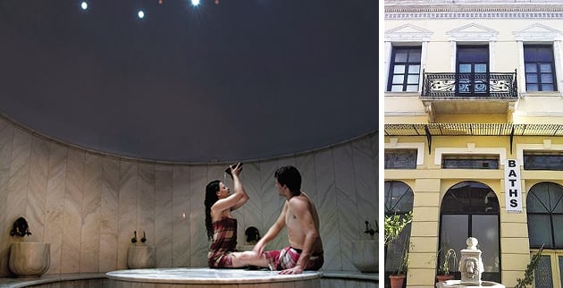 Το νιώθεις στην ατμόσφαιρα καθώς στέκεσαι κάτω από τον επιβλητικό θόλο με τον στρογγυλό μαρμάρινο πάγκο στο κέντρο και τις ατομικές γούρνες περιμετρικά στο θερμό.