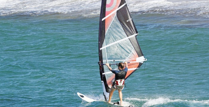 Αν και αρχάριος, ο σύζυγος της Μαριέττας Χρουσαλά έδειξε να έχει ταλέντο στο windsurfing.