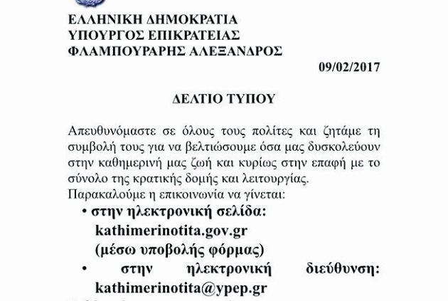 «Κυτίο παραπόνων» ο Αλέκος Φλαμπουράρης. Ο υπουργός Επικρατείας και στενός συνεργάτης του πρωθυπουργού ζητεί από τους πολίτες να του στέλνουν τα παράπονά τους… Φοβάμαι ότι δεν θα φτάσει ο κυβερνοχώρος να τα υποδεχτεί! Εκείνος όμως επιμένει να δημιουργήσει ειδική ιστοσελίδα, στην οποία θα απευθύνονται οι δυσαρεστημένοι. Βρήκαν δουλειά στο Μαξίμου. Καλό είναι πάντως που το σκέφτηκε έστω και τώρα ο υπουργός κι ελπίζω να βρεθούν πολίτες να του στείλουν εκεί και φωτογραφίες από φτωχούς που ψάχνουν φαγητό στους κάδους κάθε μέρα και ώρα από την Ανάκασα μέχρι την Εκάλη, μήπως και δει τι συμβαίνει γύρω του!