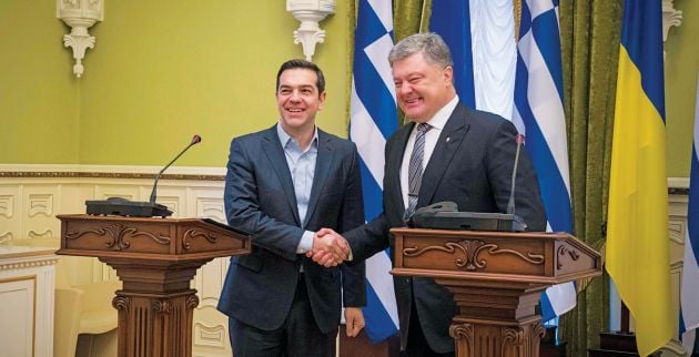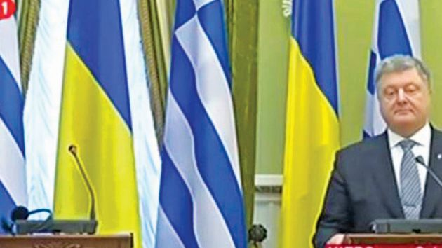 Ο Ουκρανός πρόεδρος απορημένος γύρισε το κεφάλι δύο φορές και προσπαθούσε να αντιληφθεί τι συμβαίνει με τον Ελληνα αξιωματούχο. «Πήγε προς νερού του» που λέει ο λαός. Ασχετο!