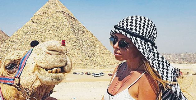 Φορώντας λευκό Τ-shirt και τουρμπάνι στα μαλλιά, η εκρηκτική τραγουδίστρια ανάρτησε αυτή τη φωτογραφία στον λογαριασμό της στο facebook και συγκέντρωσε χιλιάδες likes αλλά και πολλά σχόλια από τους διαδικτυακούς φίλους της. Με φόντο τις πυραμίδες η Μαρίνα έδειξε ακόμη μία φορά πόσο πολύ αγαπάει τα ζώα. Η ίδια, εξάλλου, έχει στο διαμέρισμά της στα νότια προάστια έναν σκύλο και έναν κουνέλι.
