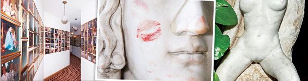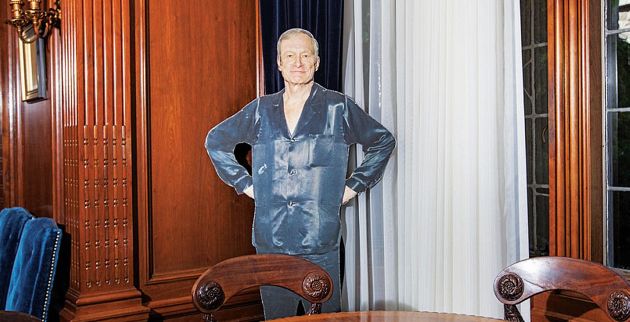 Ενα πεταμένο στο δάπεδο παπιγιόν, που φορούσε κάποιο «κουνελάκι», ένα μαρμάρινο άγαλμα γεμάτο με φιλιά από κραγιόν των καλλονών του «Playboy», αλλά και ένα χάρτινο ομοίωμα του Χέφνερ με πιτζάμες θυμίζουν το αισθησιακό παρελθόν.