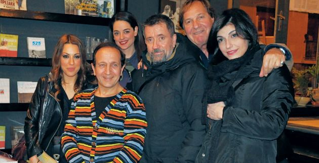 Λίγο παραδίπλα, στα δεξιά του, έχει την αγαπημένη του Νικολέτα Κοτσαηλίδου, ενώ στο «οικογενειακό» πορτρέτο πόζαραν επίσης οι Αννα Μενενάκου, Σπύρος Μπιμπίλας, Ξανθή Γεωργίου και Κώστας Βενετσάνος. Ολοι τους βρέθηκαν σε παράσταση που έγινε για τη στήριξη του ΤΑΣΕΗ.