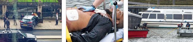 Μόλις 36 μέτρα μακριά από το σημείο όπου στεκόταν η πρωθυπουργός Τερέζα Μέι ο «ασιατικής καταγωγής μεσήλικας», όπως τον περιγράφουν οι αυτόπτες μάρτυρες, τράβηξε μαχαίρι και κατακρεούργησε αστυνομικό, αφού προηγουμένως το αυτοκίνητο που οδηγούσε είχε «θερίσει» πεζούς που περνούσαν από τη γέφυρα του Ουέστμινστερ. Είκοσι άνθρωποι χτυπήθηκαν από το όχημα, που ανέβηκε στο πεζοδρόμιο και του οποίου η δολοφονική πορεία σταμάτησε στα κάγκελα του Κοινοβουλίου. Τουλάχιστον δύο από αυτούς εξέπνευσαν.
