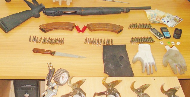 Οι αστυνομικοί βρήκαν και κατάσχεσαν σε μια παλιά, εγκαταλειμμένη αποθήκη στην οποία διέμενε ο δραπέτης ένα Καλάσνικοφ, δύο γεμιστήρες, 54 φυσίγγια διάφορων τύπων, ένα κυνηγετικό όπλο, το οποίο είχε κλαπεί στις 9 Φεβρουαρίου σε ληστεία στην Αρκίτσα Φθιώτιδας, διαρρηκτικά εργαλεία, γάντια, κουκούλες και κινητά τηλέφωνα. Επίσης εντόπισαν ένα φορτηγό, το οποίο, όπως προέκυψε, είχε κλέψει ο 28χρονος από τη Νέα Σελεύκεια Ηγουμενίτσας μαζί με δύο ομοεθνείς του, ηλικίας 43 και 23 ετών.
