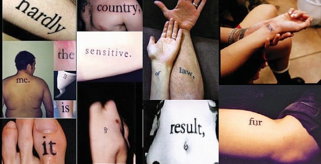 Ενα πρωτότυπο αφήγημα που δεν θα μπορέσει κανείς -εκτός από την ίδια- να διαβάσει ολοκληρωμένο συγγράφει από το 2003 η Αμερικανίδα συγγραφέας Σέλεϊ Τζάκσον. Και αυτό γιατί οι 2.095 λέξεις του δεν θα βρεθούν ποτέ τυπωμένες σε χαρτί, αλλά «χτυπημένες» στα σώματα ισάριθμων εθελοντών από όλα τα μήκη και πλάτη της Γης, ως τατουάζ. Το ευφάνταστο project της έχει τον τίτλο «SKIN: a mortal work of art» και βρίσκεται ακόμα στην αρχή του, καθώς μέχρι στιγμής έχουν γίνει τατουάζ μόλις οι 553.