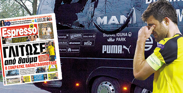 Kραυγή απόγνωσης από τον Σωκράτη Παπασταθόπουλο! Ο εκ των αρχηγών της Ντόρτμουντ είναι συγκλονισμένος και δεν μπορεί να πιστέψει τον εφιάλτη που βίωσε το βράδυ της Μεγάλης Τρίτης στη Γερμανία. Μάλιστα, τα έβαλε ανοιχτά με την Ευρωπαϊκή Ομοσπονδία Ποδοσφαίρου για την απαράδεκτη απόφασή της να διεξαχθεί η αναμέτρηση του Τσάμπιονς Λιγκ μία ημέρα αφότου το πούλμαν που τους μετέφερε στο γήπεδο «Σίγκναλ Ιντούνα Παρκ» δέχτηκε βομβιστική επίθεση. Από την πρώτη στιγμή η «Espresso» σάς περιέγραψε με κάθε λεπτομέρεια το σκηνικό τρόμου που εκτυλίχθηκε μπροστά στα μάτια του διεθνούς αμυντικού, αλλά και το πώς αυτός και οι συμπαίκτες του στην Μπορούσια γλίτωσαν από θαύμα.