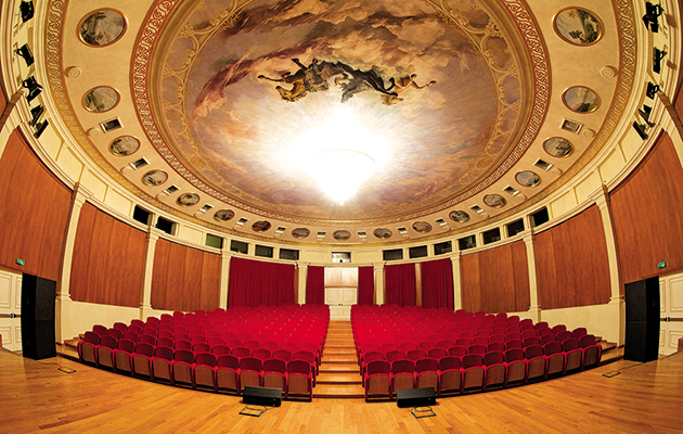 Το εσωτερικό της αίθουσας της όπερας είναι αυστηρά μελετημένο για την τέλεια ηχητική μετάδοση, ενώ στην οροφή δεσπόζει μια επιβλητική ακτινωτή κατασκευή που θυμίζει έντονα τον Ηλιο, με μικρά ενσωματωμένα στρογγυλά φώτα να τον περιβάλλουν. Επάνω ακριβώς από την οροφή της όπερας βρίσκεται ο κεντρικός χώρος της πυραμίδας, που λειτουργεί ως αίθουσα συνεδριάσεων και συνάντησης των θρησκευτικών ηγετών του κόσμου.