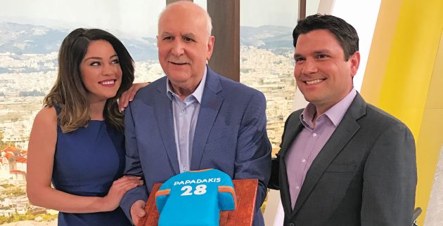 Εκλεισε 28 χρόνια στον ΑΝΤ1 και το γιόρτασε! Ο Γιώργος Παπαδάκης έκανε γενέθλια στο πλατό με μια τούρτα «γενεθλίων», η οποία ήταν συμβολικά μια αθλητική φανέλα με το νούμερο 28.