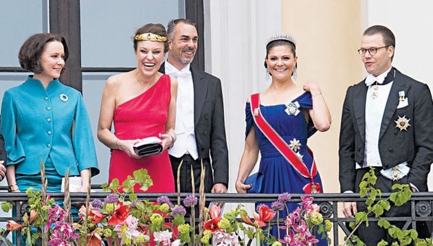 Φορώντας one shoulder κόκκινο φόρεμα χωρίς σουτιέν και μια χρυσαφένια τιάρα στα μαλλιά, βγήκε μαζί με όλα τα μέλη της βασιλικής οικογένειας και τους γαλαζοαίματους προσκεκλημένους τους στο μπαλκόνι του παλατιού για να χαιρετήσει το συγκεντρωμένο πλήθος.