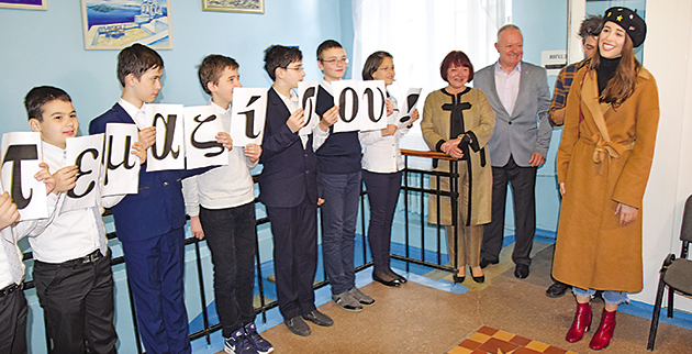Η ταλαντούχα εκπρόσωπός μας στην 62η Eurovision Demy δεν μπόρεσε να κρύψει τη συγκίνησή της κατά τη διάρκεια επίσκεψή της σε ένα από τα τρία ελληνικά σχολεία του Κιέβου, το οποίο μάλιστα έχει και το όνομα της πατρίδα μας, δηλαδή λέγεται «Ελλάδα».