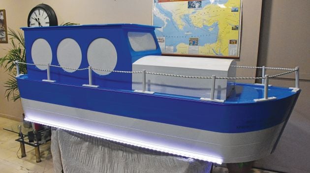 Πρόκειται για μια μινιατούρα καϊκιού, με εξαιρετικές λεπτομέρειες, μία εκ των οποίων είναι ότι διαθέτει και… νυχτερινό φωτισμό! Το φέρετρο-καΐκι έχει προσελκύσει την περιέργεια του κόσμου που το βλέπει στη βιτρίνα του γραφείου τελετών.