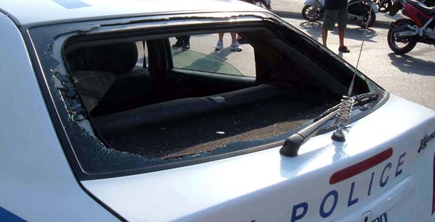 Κατά τη διάρκεια της συμπλοκής το υπηρεσιακό όχημα υπέστη ζημιές, ενώ οι άγνωστοι νεαροί διέφυγαν μόλις εμφανίστηκαν μοτοσικλετιστές της Ομάδας ΔΙΑΣ.