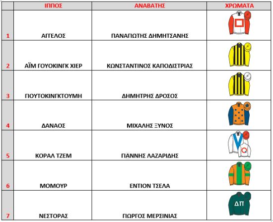 Θα ιππεύσει το Νο 3, ΓΙΟΥΤΟΚΙΝΓΚΤΟΥΜΗ. Ο Δημήτρης Δρόσος τερμάτισε στην πρώτη πεντάδα τα δύο προηγούμενα χρόνια και έχει στο ενεργητικό του αξιόλογες επιτυχίες. Ανάμεσα στις διακρίσεις του έμπειρου αναβάτη,  ξεχωρίζουν οι νίκες του με τον ΜΠΙΓΚ ΧΑΡΤ στο Κριτήριο Τριετών και στο Ντέρμπι του 2012. Γνωρίζεται καλά με τον ΓΙΟΥΤΟΚΙΝΓΚΤΟΥΜΗ, τον οποίο ίππευσε στις 2 από τις 3 συμμετοχές του.