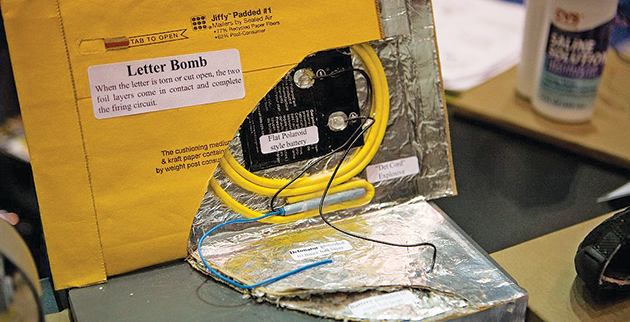 Οπως διαπίστωσαν, μέσα στο εσωτερικό από σκληρό χαρτόνι υπήρχε εκρηκτική ύλη, πιθανότατα σκόνη μαύρης πυρίτιδας, συνδεδεμένη με μπαταρία και ένα μανταλάκι που θα λειτουργούσε ως πυροδοτικός μηχανισμός μόλις άνοιγε ο φάκελος. Η συνδεσμολογία παραπέμπει ευθέως στα δέματα-βόμβες της «Συνωμοσίας Πυρήνων της Φωτιάς» και ειδικά αυτό κατά του πρώην διοικητή της Αντιτρομοκρατικής. Ο αυτοσχέδιος εκρηκτικός μηχανισμός μεταφέρθηκε στα εγκληματολογικά εργαστήρια της ΕΛ.ΑΣ. για να εξακριβωθεί αν υπάρχουν δακτυλικά αποτυπώματα ή ίχνη γενετικού υλικού.